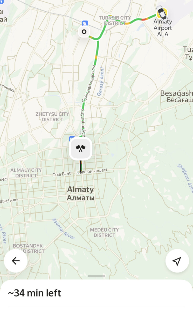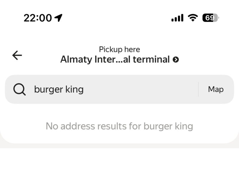ここで中央アジア用のUberアプリの代わり、Yandex Goでタクシーを呼ぶのですが、なんとホステルの住所を検索かけても出てこない。