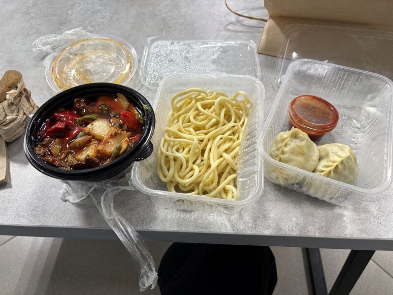 テイクアウトした中央アジア料理、ラグマンとマンティを食べます。